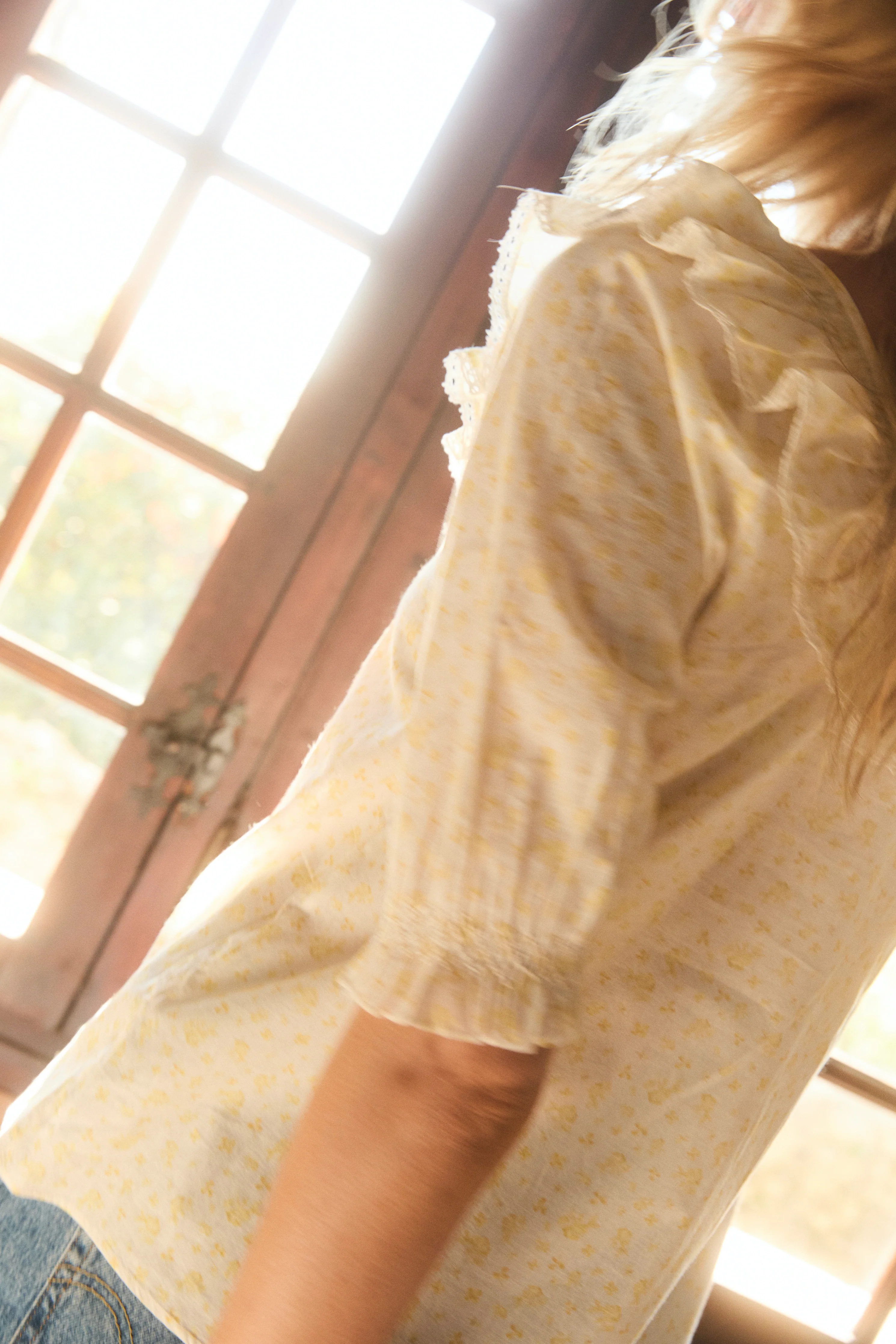 Cut from GOTs organic cotton voile and available in a range of prints, Felicity features a wide scoop ruffle neckline trimmed in contrast vintage lace, an intricate pintuck bodice and hand-smocked half sleeves. The perfect piece to elevate your every day jeans.